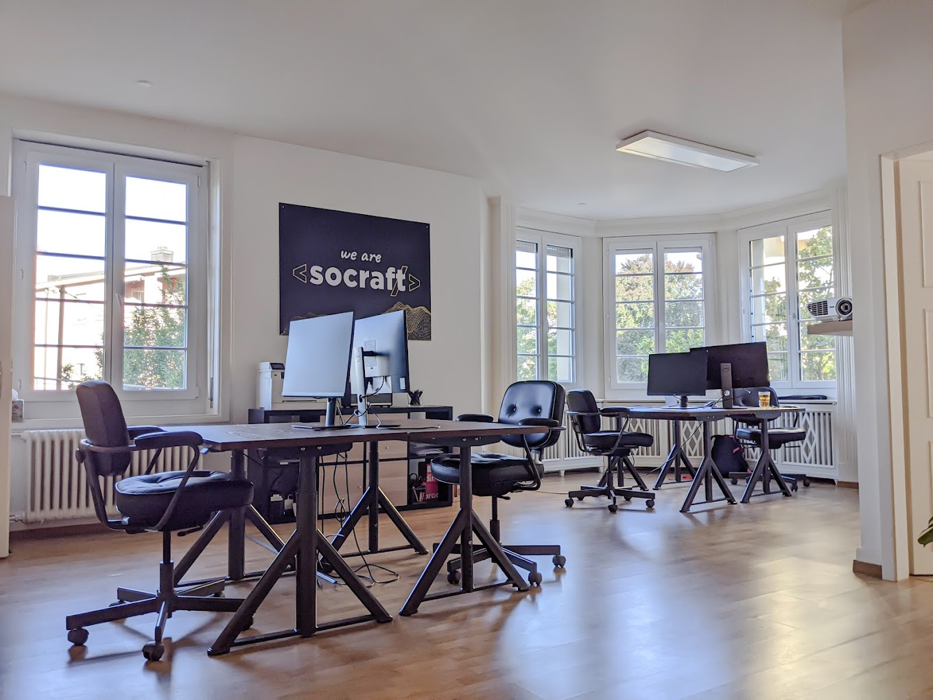 Come and take advantage of our premises in Lausanne, close to MonRepos Park. You'll find : - wifi, laser printer - desks with 27″ screens - a fully-equipped kitchen (coffee, tea, microwave, fridge, etc.) - a relaxation area with sofa & Switch - a bathroom with shower (for sports enthusiasts) - a library - and crafters of course! You can also reserve rooms to organize your events: training, workshops, meetings, etc.